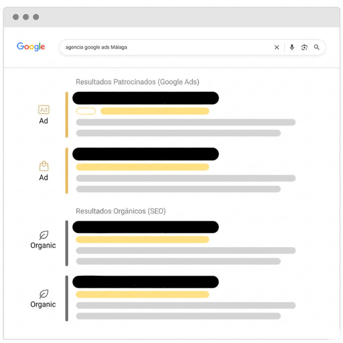 El SEM —Search Engine Marketing— es la disciplina del marketing digital que engloba la publicidad de pago en buscadores. A diferencia del SEO, que trabaja el posicionamiento orgánico a largo plazo, el SEM genera resultados desde el momento en que la campaña se activa. Cuando alguien busca en Google un producto o servicio que tú ofreces, tu anuncio aparece en los primeros resultados. Pagas únicamente cuando esa persona hace clic. No hay coste por impresión, no hay coste por visibilidad: solo pagas por tráfico real.